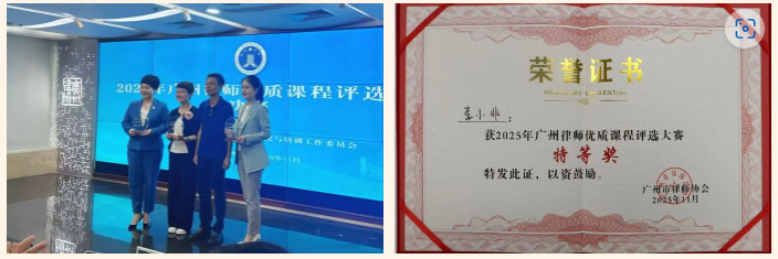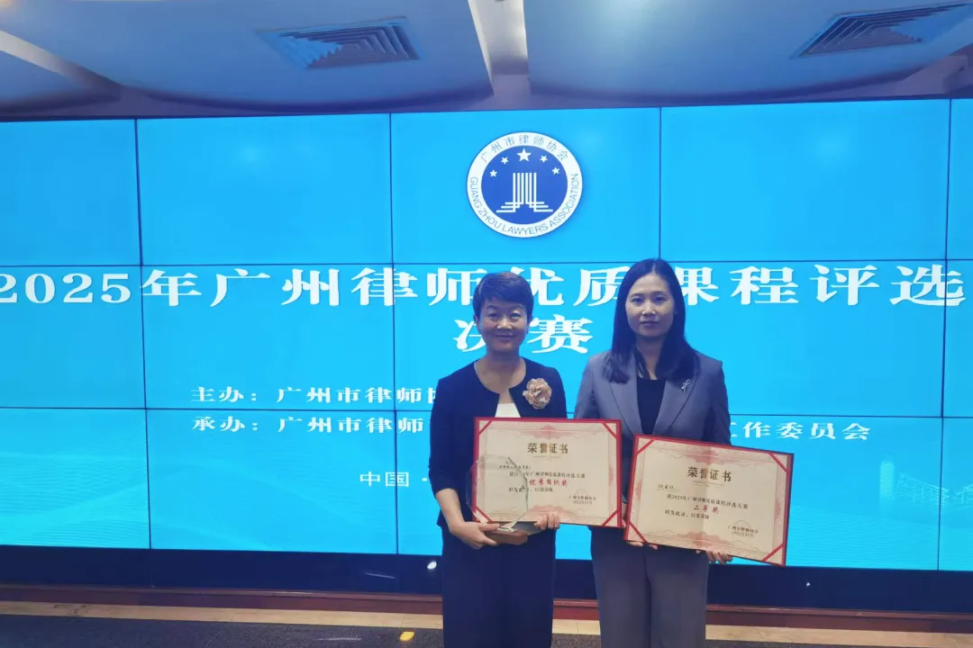 2025年11月27日,由广州市律师协会主办的“2025年广州律师优质课程评选大赛”圆满落幕。广东五美律师事务所李小非律师、欧美欣律师在大赛中斩获佳绩。