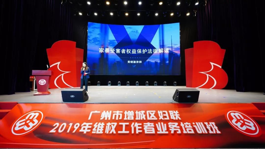 2019年12月24日下午,我所黄晓颖律师受广州市增城区妇女联合会邀约,为广州市增城区妇联2019年维权工作者业务培训班的学员们开展新形势下妇女维权工作的业务知识和工作技巧的主题培训。广州市增城区妇联婚姻家庭调解委员会成员、各镇街妇联常务副主席、区直局妇委主任、各村(居)妇联主任代表等400多名维权骨干参加培训。