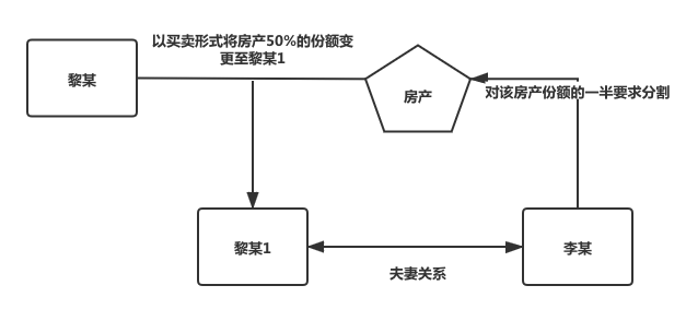 黎某1与李某系夫妻关系。婚姻关系存续期间内,黎某1之父黎某将自己名下房产产权的50%以买卖合同的形式过户至黎某1名下。此后,黎某1与李某感情破裂。离婚分割财产时,李某主张该房产50%的产权属于夫妻共同财产,而黎某1坚决主张系父母对其个人的赠与,属于其个人财产,而不同意分割。