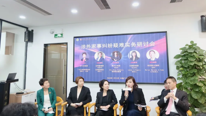 2024年11月19日,由广东省法学会婚姻家庭法学研究会主办、广东五美律师事务所承办的“涉外家事纠纷疑难实务研讨会”在广东五美律师事务所顺利举办,本次研讨会由五美律所主任李小非律师担任主持,来自大湾区的40多位律师参与了研讨。